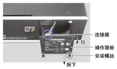 一、如图1拆下E4000正面操作面板的4个固定螺丝,将操作面板轻轻从控制器中拉出(图3),拆下操作面板后的连接器。