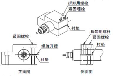 将垫片 (例如:t = 2mm)插入螺旋开槽部。