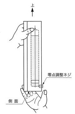 水平调整螺丝向上, 用手轻拍测定面, 调整方法如图: | ![]() |