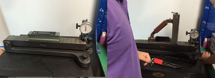 将测量工件和水平仪底部接触面清理干净,然后把水平仪平放在在工件上将X轴方向调平(气泡会在水准器中间)接着将水平尺旋转90°,把Y轴方向调平。若X轴和Y轴都调好后,将水平尺任意工件的任意一个位置水平尺的气泡都会出于中间,然后旋转180°气泡都会显示中间。前提是在精密水平测试台完成的操作。如下图: