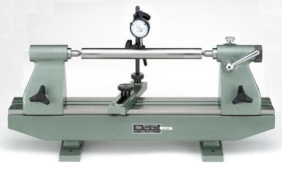 使用方法:拧紧偏心轴手把,首先将固定顶尖座在仪座上固定。按被测零件长度将活动顶尖座固定在合适的位置。压下球头手柄,装入零件,用两顶尖顶住零件中心孔。拧紧紧固手把,将顶尖固定。将活动表座放在放在所需位置。配合百分表(千分表)即可进行检测工作。