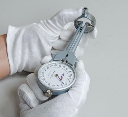 ![]() | 首先,将朝向外侧的测针间的距离在环规或量表上设定基准尺寸;旋转外框,使连动分度盘的指针指向0;之后,将测针插入需要进行测量的内径部进行测量,读取指针的移位量。在基准尺寸的基础上,将移位量加或减,得出的就是内径尺寸。本系列附有替换测针(即根据内径尺寸来选择适当尺寸的替换测针)。 外径卡规与内径卡规的测量相反。用朝向内侧的两个测针夹住测量物,读取数据。 |
