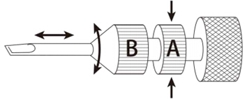用手指按住到头安装的A部分,续传B部分,刀头就能很轻松的拆卸下来。 |