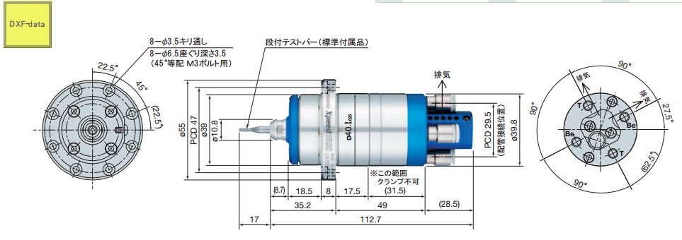 空气轴承涡轮主轴 | 直径 | 转速(0.6Mpa) | 主轴精度 | 输出功率 | 重量 |