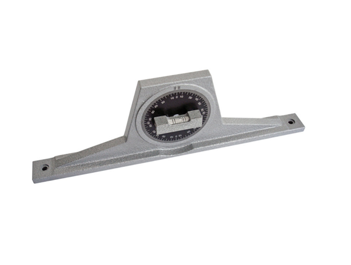 由优质特殊铸件制成,纹理烤漆,平底。该设备配备 360° 刻度盘,可轻松测量任何倾斜表面(甚至头顶)。支撑面经过精细研磨。该设备配备了一个简单的水平。该水平仪带有2个相距275mm 的孔,带有一个 用于拧紧 M5螺钉的埋头孔。