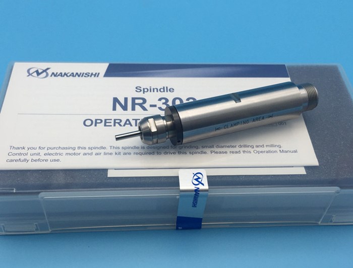 日本NAKANISHI高速主轴NR-303,是日本NAKANISHI高速主轴E2000系列产品,直径22.8mm、转速30000转/min,可达气动马达AM-3020R、AM-3020L、AM-3020RA、AM-3020LA搭配成为气动主轴,也可以电动马达EM-2350配套成为电动主轴。