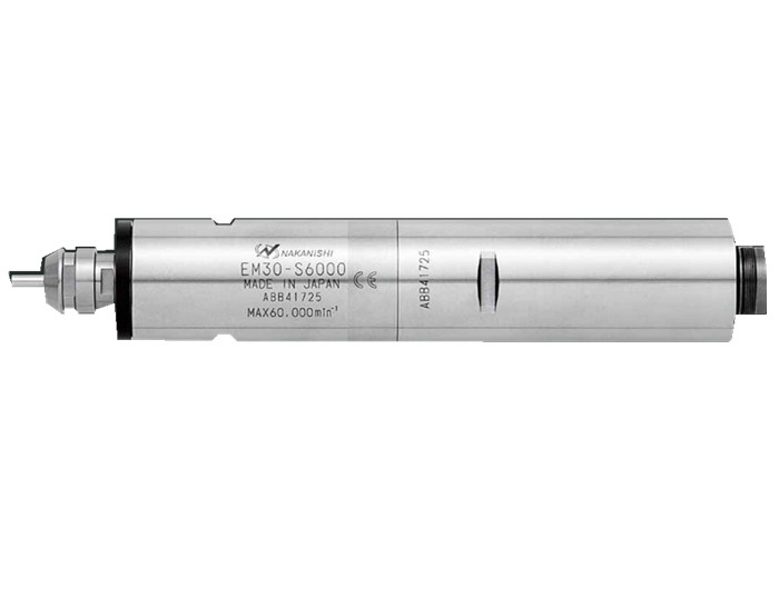 日本NAKANISHI高速电主轴EM20-S6000电动主轴,属于E3000系列,主轴转速60000转/min,跳转精度1μm,体积小,直径只有20mm,适合于安装在排刀机上钻孔、走心机钻孔、铣削等。