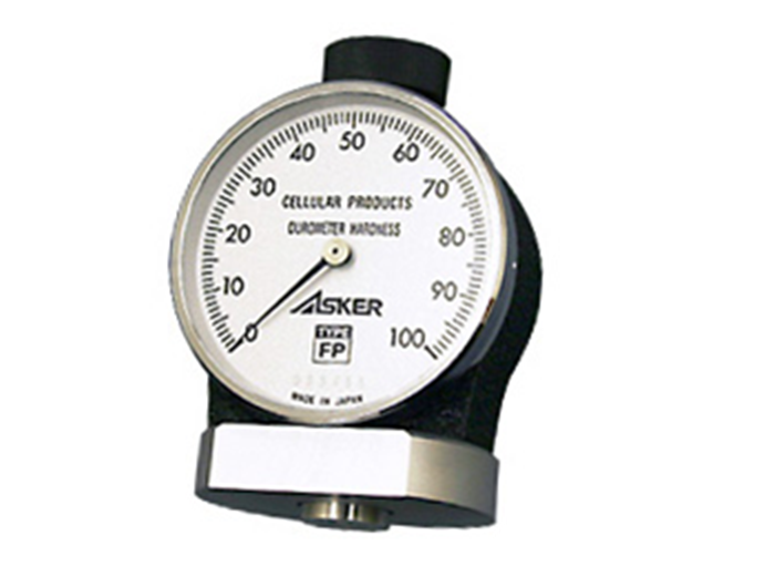 ASKER橡胶硬度计FP型, 是一种具有大压头和加压表面的硬度计,与 Asker F 型类似,用于测量特别柔软的样品的硬度。如化妆棉、化妆粉扑硬度测量,压面形状设计为椭圆形。近年来,也被用于凝胶状物质和软胶辊硬度测量。
