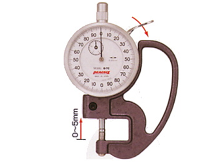 日本孔雀peacock厚度表G-7C,精度0.001mm,测量范围:0-5mm,适合精密小物件,特殊织物的厚度测量。