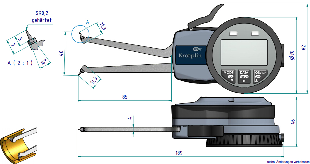 多个数显设定功能: 绝对和相对测量, 上下限超差显示等。