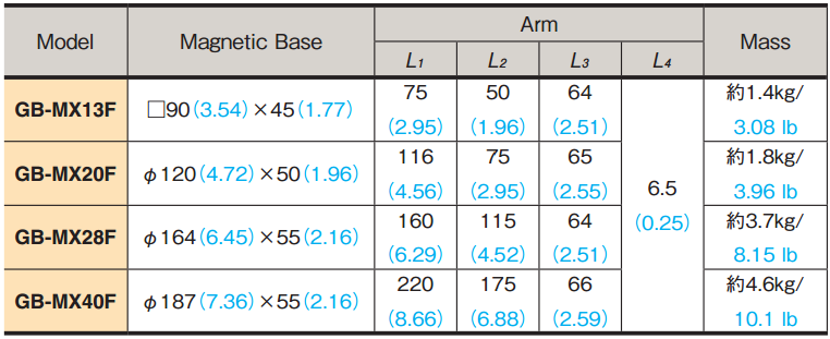 提供了光滑的石头表面上滑动端测量工作。机械手臂(从MB-MX-F)具有良好的机械锁与可靠性。一个旋钮收紧所有可调位置。
