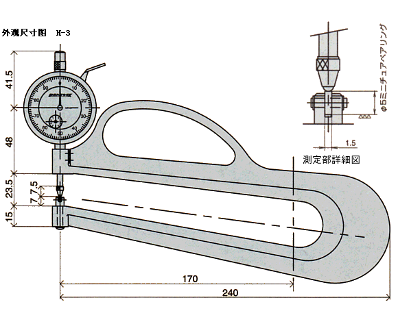 型 号 | 目 量 | 测定范围 | 测定喉深(mm) | 指示误差 | 测头 | 測定力 | |