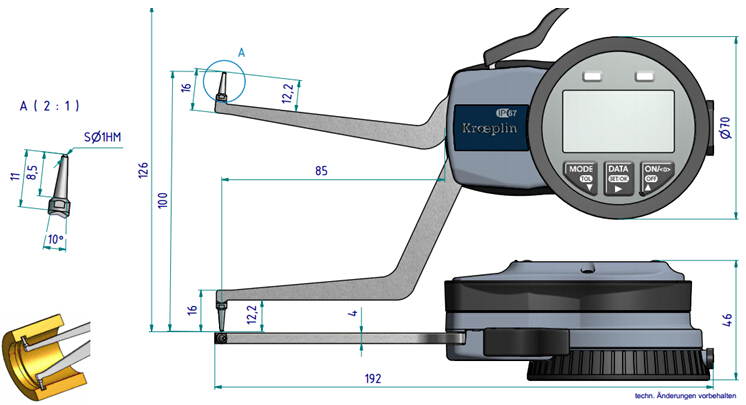 • 德国kroeplin数显内卡规G280,高精度,zui小读值0.01mm,测量范围80 -100 mm,春亨工具正规代理商。