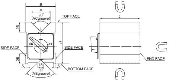 特殊的此结构,让改磁性座有抢到的抓力。(三面有磁,V槽、侧面和底部)
