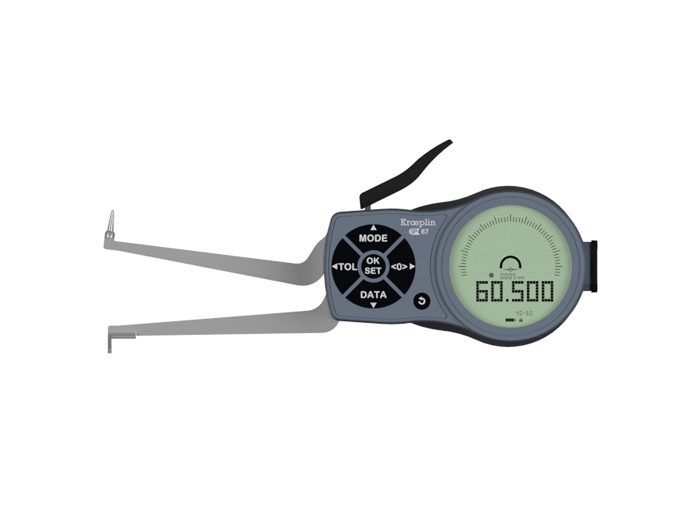 德国kroeplin数显三点式内测卡规L240P3,测量范围:80-100mm,精密0.01mm,探头臂长:85mm,重量290克,适用于凹槽测量!