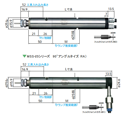 外径材质为高硬度热处理,形状有直线型和90°2种。(R-直线型,RA-90°型)