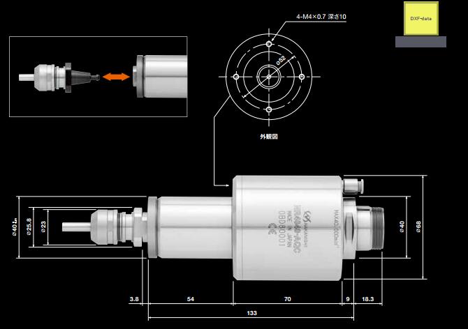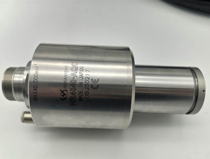 日本NAKANISHI自动换刀主轴NR4040-AQC,直径40mm,转速40000转/min,彩博888跳动精度1um以内,适合高精度加工,去毛刺、抛光、研磨主轴,尤其适合加装在工业机器人上进行自动化去毛刺!