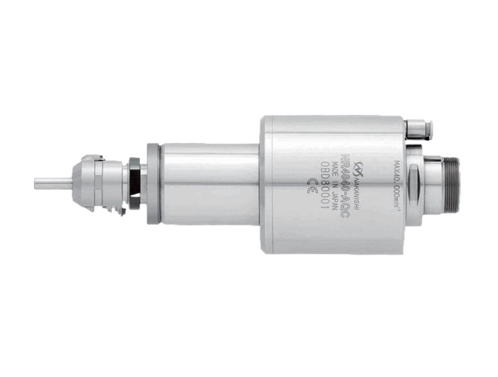 NAKANISHI大扭矩自动换刀电主轴NR4040-AQC,是一款前端分离式电主轴,也适合一款气动快速换刀电主轴,采用带底座的夹头,可实现自动换刀更滑夹头,可提供两种夹头固定架,CH16、CHK两种,最大可夹持柄径10mm。