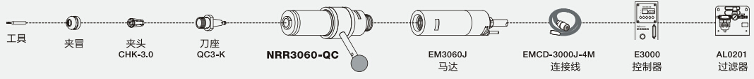 NRR-3060QC | Φ30mm | 60000min-1 | 1μm以内 | 夹头(QC3-A系列) | 570g |