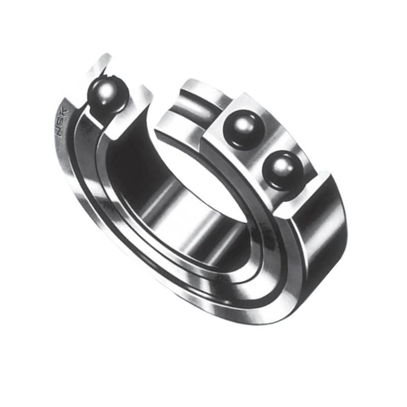(1) 双列角接触球轴承-将单列角接触球轴承背对背双联,内圈、外圈各自成为一体的结构。可以承受二个方向的轴向载荷,有力拒载荷能力。可以作为固定端轴承使用,使用冲压保持架。