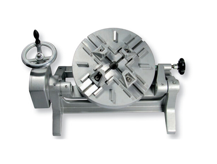 夹盘有安装空穴,方便安装在工作台上。可根据工件尺寸选择 300mm 或 400mm 直径夹距的夹头。工作台可横向旋转 360° 和纵向旋转 90°。