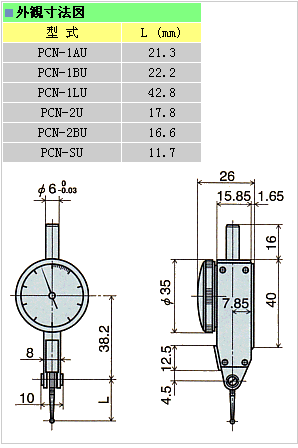 型 式 | 目 量 | 测定范围 | 刻度仕样 | 精度 (μm) | 測定力 | ||