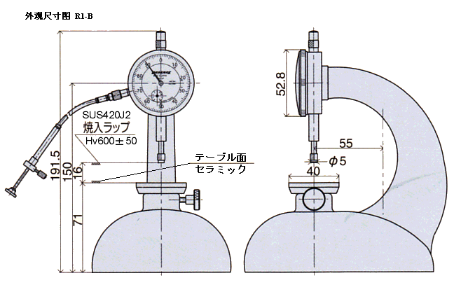 R1-B橡胶测厚仪,是一款带测试台的橡胶测厚仪,其量侧面可以上下移动,可由右边螺帽锁定。