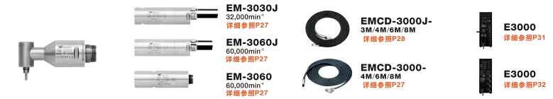 主轴 | 直径 | 转速[用EM-3060] | 主轴精度 | 夹头 | 重量 |