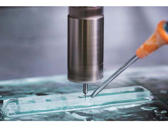 不仅可以在合成石英斜面上加工通孔,还能在蓝宝石材料上加工φ0.5mm/15mm的密孔, 在加工中心加装超声波主轴,可使加工中心有更多的特殊功能。