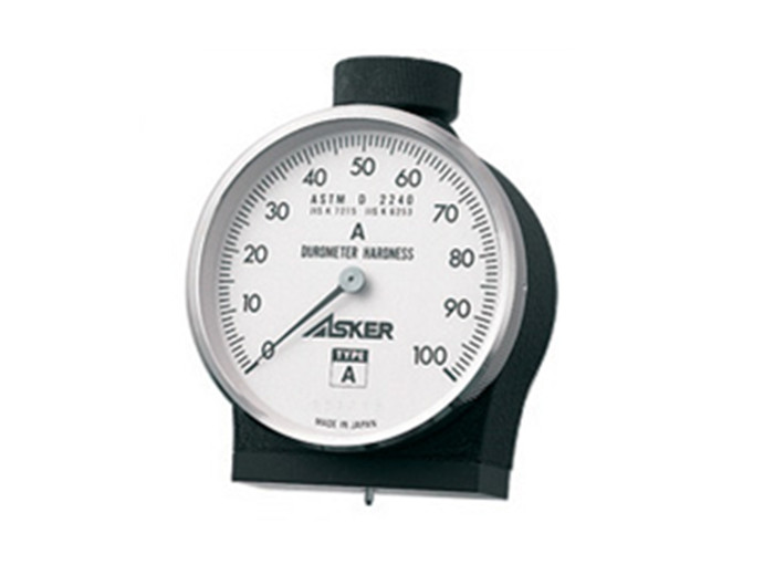 日本ASKER邵氏硬度计A型,是比较常用的橡胶硬度计型号,适用于一般橡胶硬度测量,shore A(20-90度),押针高度2.5mm,押针形状锥形,端面φ0.79mm,加压面形状44*18长方形。
