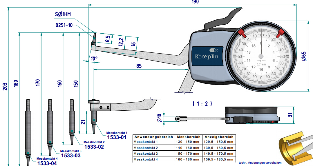 测量范围:130 -180 mm