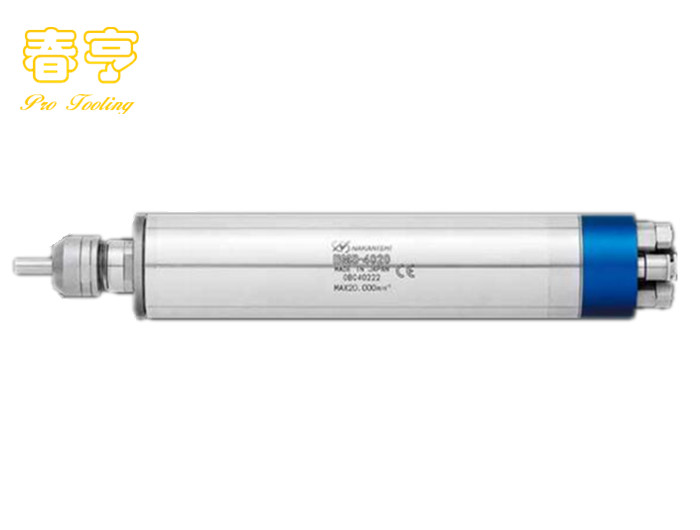 日本NAKANISHI大扭矩高速主轴BMS-4020,直径40mm,转速20000转/min,扭矩可达1.0N.m,输出功率1200W,马达主轴一体式,搭配E4000控制器配套使用,主要应用不锈钢等较硬工件去毛刺、钻孔、铣削等作业。