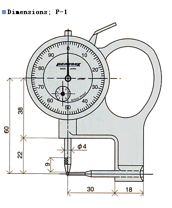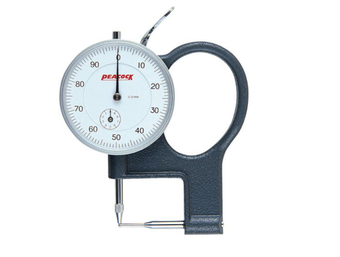 日本孔雀peacock指针式厚度表P-1,最小读值:0.01mm,测量范围:0-10mm,适用于测量管道壁厚和测量弯曲工件的厚度。