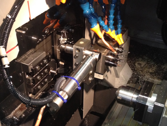 津上走心机BO124加装侧铣动力头RAS-151E,转速可实现侧面铣削加工,如侧面钻孔、侧面铣削、侧面倒角等加工。RAS-151E属于加长型直角电主轴,内置1/2.67减速器,切削工具最大转速7490RPM,对于小而短的机床加工空间,特别适合。不仅适用于走心机,排刀机等小型数控机床均可加装。