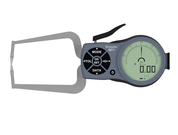 德国KROEPLIIN数显外卡规K220,测量范围:0至20 mm,最高探头臂长:85毫米。