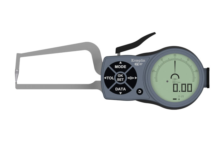 德国kroeplin数显外卡规K2R20,测量范围:0—20 mm,最高探头臂长:85毫米。快速测量确定,分辨率为1μm,使用更便捷,更精准!