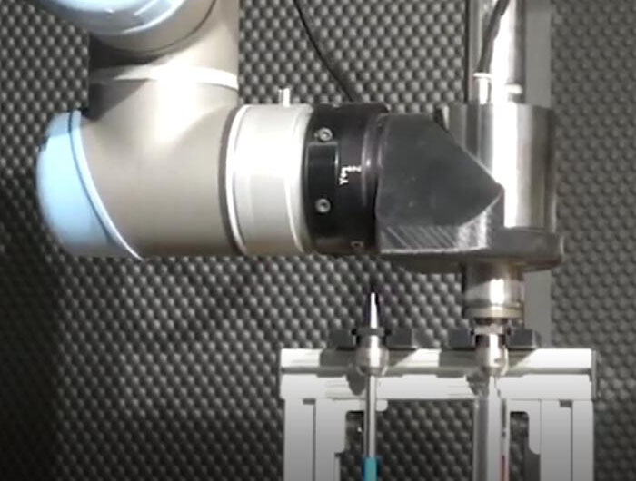 彩博888 铝铸件去毛刺,不仅要去除外表面毛刺,还要去除内孔毛刺,因此同一件工件需要更换不同的研磨耗材,视频中,就是在小型机械臂上加装NAKANISHI自动换刀电主轴NR3060-AQC的加工视频。