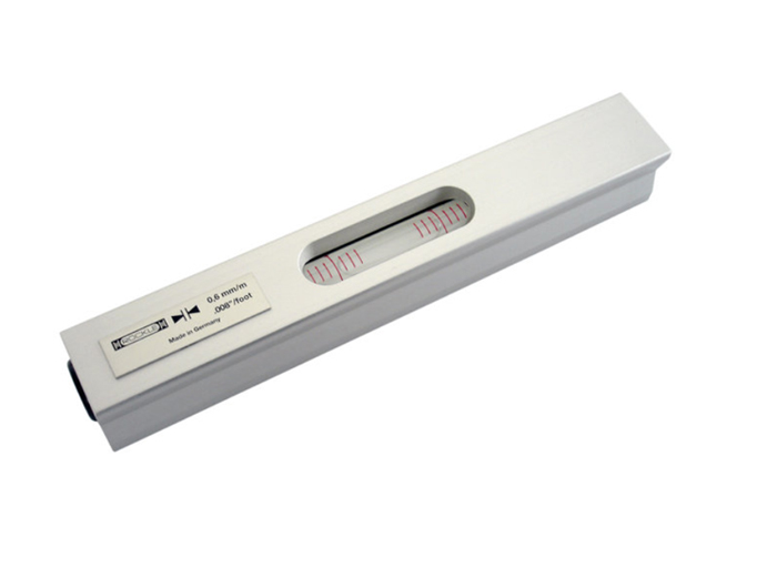 铝制轻型设计,带有平面和棱柱形测量面 (120°),便于调整水平面和轴。表面采用银阳极氧化处理。配备有地面纵向水平仪。纵向样品刻度值显示在上。