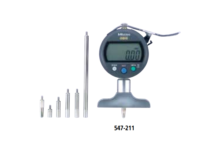 数显深度百分表547-211测量范围0-200mm,分辨率0.01mm,行程127mm,测定力1.5N,附硬质合金球形测头,接长杆5个。