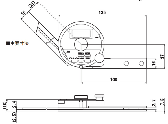 数显角度计产品尺寸图示: