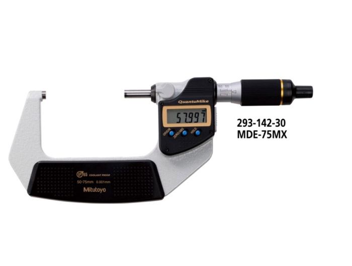 日本三丰mitutoyo快进数显外径千分尺293-142-30,型号:MDE-75MX,测量范围:50 - 75mm ,分辨力:0.001mm。单手握持即可在同一测量时间内实现6步测量,与传统千分尺相比,定位时间和测量时间可分别降低60%和35%。