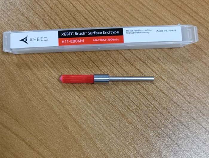 彩博888锐必克XEBEC表面用小直径研磨刷A11-EB06M,直径5mm,适用于毛刺根部厚度小于0.1mm的毛刺去除,可与转速可控的旋转工具或设备一起使用,如电动旋转工具、加工中心、复合机床、专用机床、机器人、带铣削功能的车床使用。